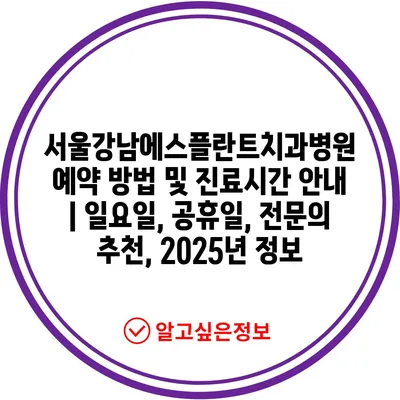 서울강남에스플란트치과병원 예약 방법 및 진료시간 공지 | 일요일, 공휴일, 전연락 추천, 2025년 정보 에 대해 자주 묻는 질문 TOP 5