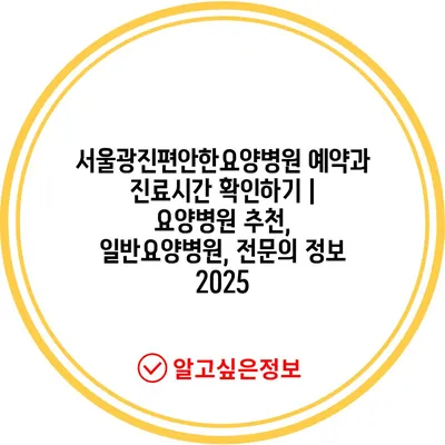 서울광진편안한요양병원 예약과 진료시간 확인하기 | 요양병원 추천, 일반요양병원, 전연락 정보 2025