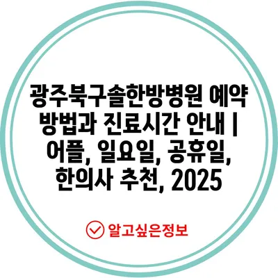 광주북구솔한방병원 예약 방법과 진료시간 공지 | 어플, 일요일, 공휴일, 한의사 추천, 2025 에 대해 자주 묻는 질문 TOP 5