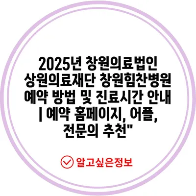 2025년 창원의료법인 상원의료재단 창원힘찬병원 예약 방법 및 진료시간 공지 | 예약 홈페이지, 어플, 전연락 추천에 대해 자주 묻는 질문 TOP 5