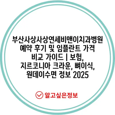 부산사상사상연세비앤이치과병원 예약 후기 및 임플란트 가격 비교 설명서 | 보험, 지르코니아 크라운, 뼈이식, 원데이수면 정보 2025에 대해 알아보겠습니다.