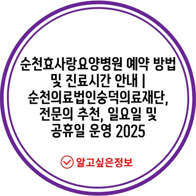 순천효사랑요양병원 예약 방법 및 진료시간 공지 | 순천의료법인숭덕의료재단, 전연락 추천, 일요일 및 공휴일 운영 2025