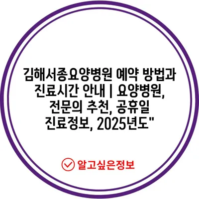 김해서종요양병원 예약 방법과 진료시간 안내 | 요양병원, 전문의 추천, 공휴일 진료정보, 2025년도”