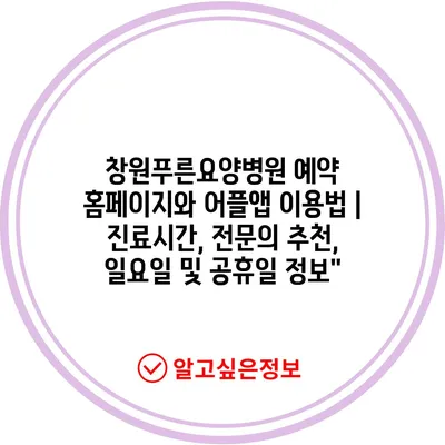 창원푸른요양병원 예약 홈페이지와 어플앱 이용법 | 진료시간, 전문의 추천, 일요일 및 공휴일 정보”