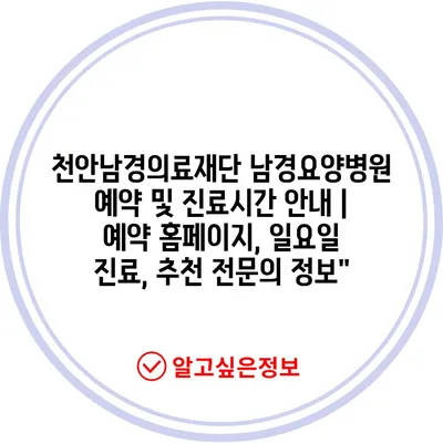 ✅ 천안남경의료재단의 진료시간과 예약 방법을 자세히 알아보세요.