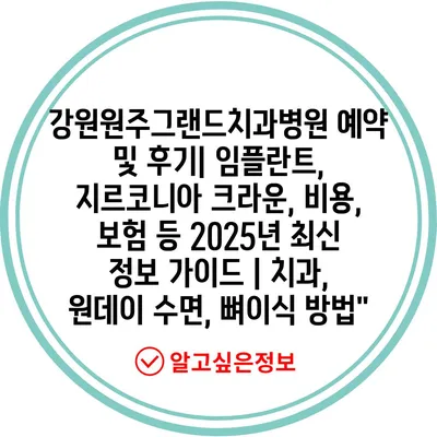 강원원주그랜드치과병원 예약 및 후기| 임플란트, 지르코니아 크라운, 비용, 보험 등 2025년 최신 정보 설명서 | 치과, 원데이 수면, 뼈이식 방법에 대해 자주 묻는 질문 TOP 5