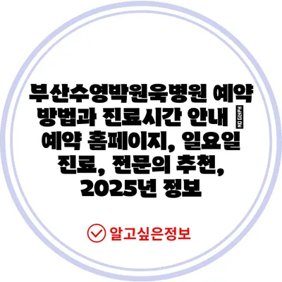 부산수영박원욱병원 예약 방법과 진료시간 공지 | 예약 홈페이지, 일요일 진료, 전연락 추천, 2025년 정보에 대해 자주 묻는 질문 TOP 5