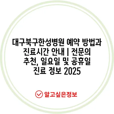 대구북구한성병원 예약 방법과 진료시간 안내 | 전문의 추천, 일요일 및 공휴일 진료 정보 2025