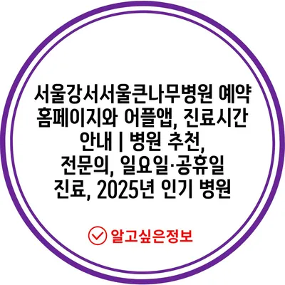 서울강서서울큰나무병원 예약 홈페이지와 어플앱, 진료시간 공지 | 병원 추천, 전연락, 일요일·공휴일 진료, 2025년 인기 병원 에 대해 자주 묻는 질문 TOP 5