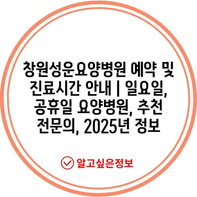✅ 창원성운요양병원의 예약 방법과 진료시간을 지금 바로 알아보세요!