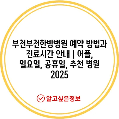 부천부천한방병원 예약 방법과 진료시간 공지 | 어플, 일요일, 공휴일, 추천 병원 2025에 대해 알려알려드리겠습니다.