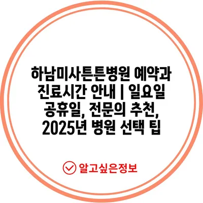 하남미사튼튼병원 예약과 진료시간 공지 | 일요일 공휴일, 전연락 추천, 2025년 병원 선택 팁 에 대해 자주 묻는 질문 TOP 5