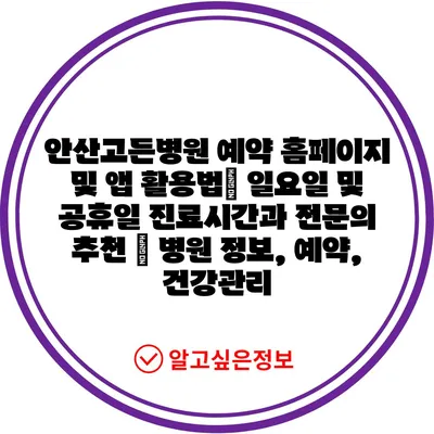 안산고든병원 예약 홈페이지 및 앱 활용법| 일요일 및 공휴일 진료시간과 전문의 추천 | 병원 정보, 예약, 건강관리