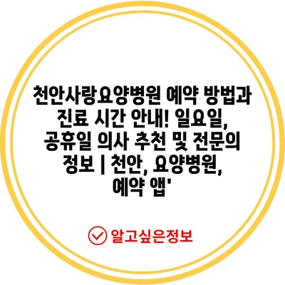 ✅ 천안사랑요양병원의 예약 방법과 진료 시간을 자세히 알아보세요.