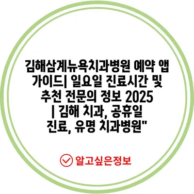 김해삼계뉴욕치과병원 예약 앱 설명서| 일요일 진료시간 및 추천 전연락 정보 2025 | 김해 치과, 공휴일 진료, 유명 치과병원”에 대해 자주 묻는 질문 TOP 5