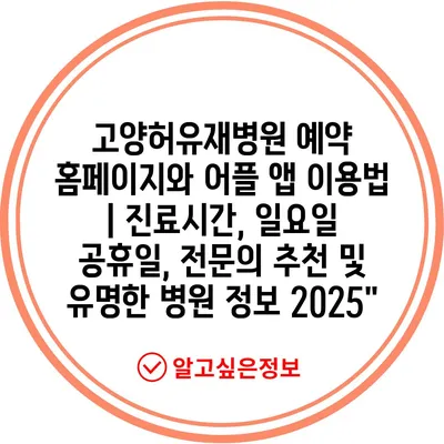고양허유재병원 예약 홈페이지와 어플 앱 이용법 | 진료시간, 일요일 공휴일, 전연락 추천 및 유명한 병원 정보 2025에 대해 알아보겠습니다.