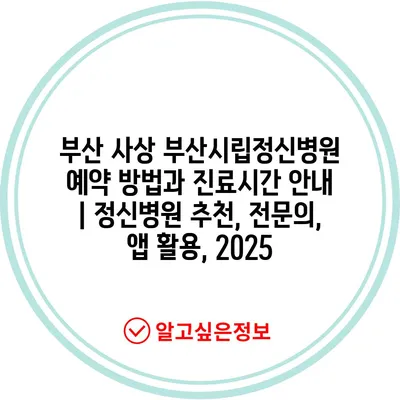부산 사상 부산시립정신병원 예약 방법과 진료시간 공지 | 정신병원 추천, 전연락, 앱 활용, 2025 에 대해 자주 묻는 질문 TOP 5
