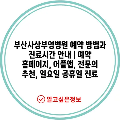 ✅ 부산사상부영병원 예약 방법을 자세히 알아보세요.