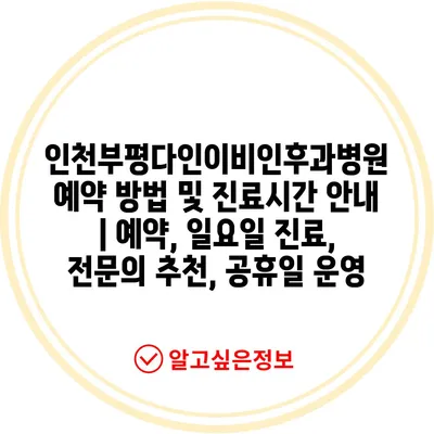 인천부평다인이비인후과병원 예약 방법 및 진료시간 공지 | 예약, 일요일 진료, 전연락 추천, 공휴일 운영 에 대해 자주 묻는 질문 TOP 5