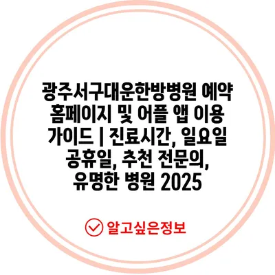 ✅ 광주서구대운한방병원의 진료시간과 예약 방법을 자세히 알아보세요.