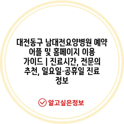 ✅ 대전동구 남대전요양병원 예약 방법을 자세히 알아보세요.