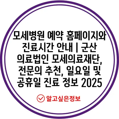 모세병원 예약 홈페이지와 진료시간 공지 | 군산 의료법인 모세의료재단, 전연락 추천, 일요일 및 공휴일 진료 정보 2025 에 대해 자주 묻는 질문 TOP 5