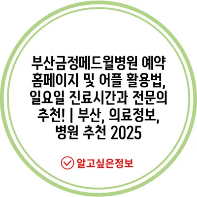 부산금정메드윌병원 예약 홈페이지 및 어플 활용법, 일요일 진료시간과 전연락 추천! | 부산, 의료정보, 병원 추천 2025 에 대해 자주 묻는 질문 TOP 5