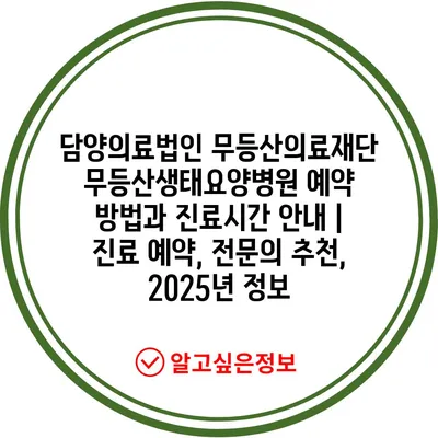 ✅ 담양 무등산생태요양병원의 예약 방법을 알아보세요!