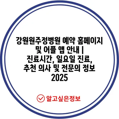 강원원주정병원 예약 홈페이지 및 어플 앱 공지 | 진료시간, 일요일 진료, 추천 의사 및 전연락 정보 2025