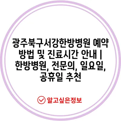 광주북구서강한방병원 예약 방법 및 진료시간 공지 | 한방병원, 전연락, 일요일, 공휴일 추천 에 대해 자주 묻는 질문 TOP 5