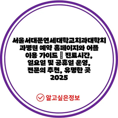 ✅ 서울서대문연세대학교치과대학치과병원의 진료시간과 예약 방법을 알아보세요.