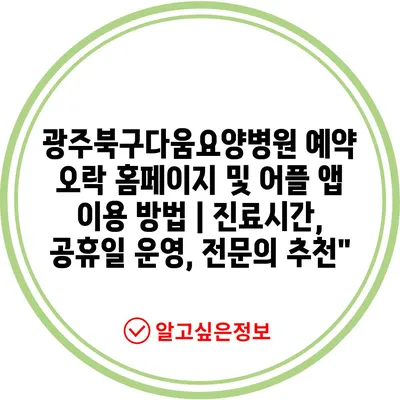 광주북구다움요양병원 예약 오락 홈페이지 및 어플 앱 이용 방법 | 진료시간, 공휴일 운영, 전문의 추천”