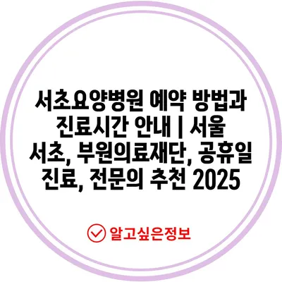 서초요양병원 예약 방법과 진료시간 공지 | 서울 서초, 부원의료재단, 공휴일 진료, 전연락 추천 2025