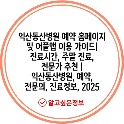 익산동산병원 예약 홈페이지 및 어플앱 이용 설명서| 진료시간, 주말 진료, 전문가 추천 | 익산동산병원, 예약, 전연락, 진료정보, 2025