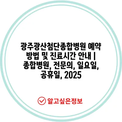 광주광산첨단종합병원 예약 방법 및 진료시간 공지 | 종합병원, 전연락, 일요일, 공휴일, 2025 에 대해 자주 묻는 질문 TOP 5