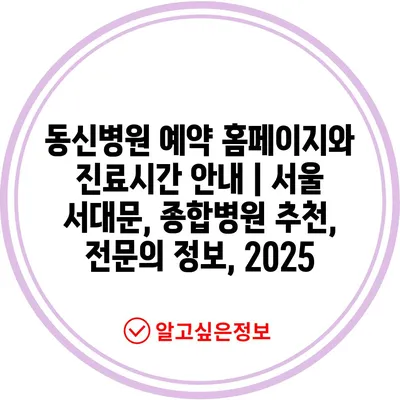 동신병원 예약 홈페이지와 진료시간 공지 | 서울 서대문, 종합병원 추천, 전연락 정보, 2025 에 대해 자주 묻는 질문 TOP 5