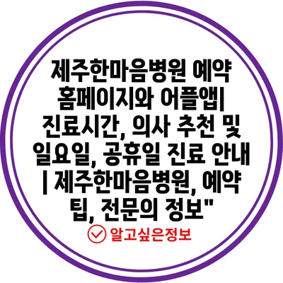 ✅ 제주한마음병원의 예약 방법과 팁을 알아보세요.