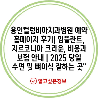 용인컬럼비아치과병원 예약 홈페이지 후기| 임플란트, 지르코니아 크라운, 비용과 보험 안내 | 2025 당일 수면 및 뼈이식 잘하는 곳”