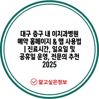 대구 중구 내 이치과병원 예약 홈페이지 & 앱 사용법 | 진료시간, 일요일 및 공휴일 운영, 전연락 추천 2025에 대해 설명알려드리겠습니다.