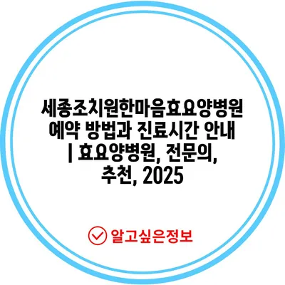세종조치원한마음효요양병원 예약 방법과 진료시간 공지 | 효요양병원, 전연락, 추천, 2025 에 대해 자주 묻는 질문 TOP 5