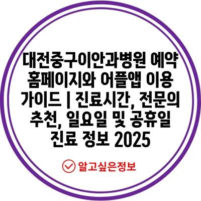 대전중구이안과병원 예약 홈페이지와 어플앱 이용 설명서 | 진료시간, 전연락 추천, 일요일 및 공휴일 진료 정보 2025 에 대해 자주 묻는 질문 TOP 5
