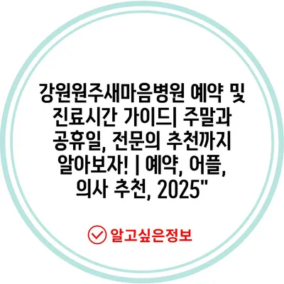 강원원주새마음병원 예약 및 진료시간 가이드| 주말과 공휴일, 전문의 추천까지 알아보자! | 예약, 어플, 의사 추천, 2025″