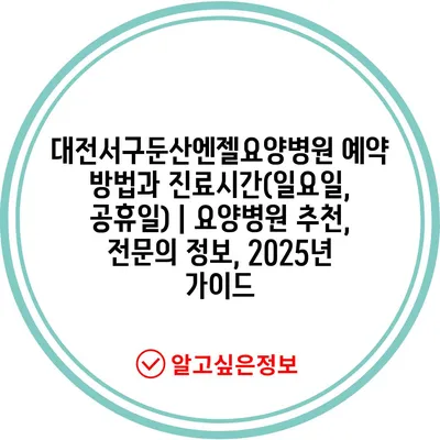 대전서구둔산엔젤요양병원 예약 방법과 진료시간(일요일, 공휴일) | 요양병원 추천, 전문의 정보, 2025년 가이드