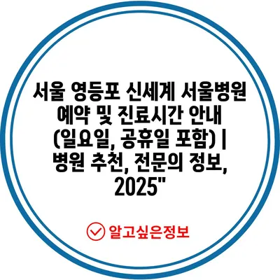 ✅ 2025년 영등포 신세계 서울병원의 예약 및 진료시간을 자세히 알아보세요.