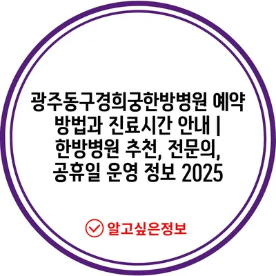 광주동구경희궁한방병원 예약 방법과 진료시간 공지 | 한방병원 추천, 전연락, 공휴일 운영 정보 2025 에 대해 자주 묻는 질문 TOP 5