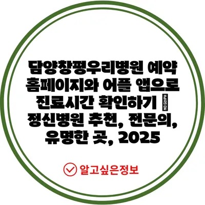 담양창평우리병원 예약 홈페이지와 어플 앱으로 진료시간 확인하기 | 정신병원 추천, 전연락, 유명한 곳, 2025 에 대해 자주 묻는 질문 TOP 5