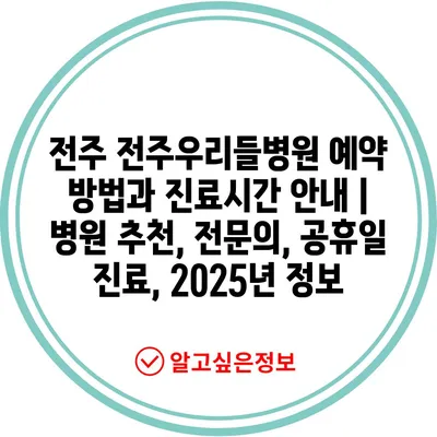 전주 전주우리들병원 예약 방법과 진료시간 안내 | 병원 추천, 전문의, 공휴일 진료, 2025년 정보