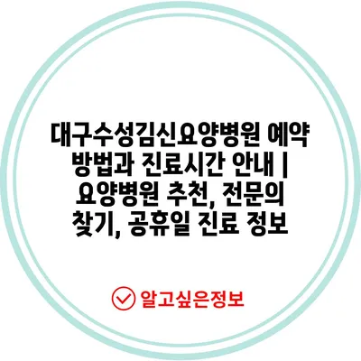 ✅ 대구수성김신요양병원 예약 방법과 진료시간을 지금 바로 알아보세요!