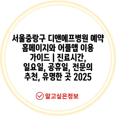 ✅ 서울중랑구 디앤에프병원의 예약 방법과 진료 정보를 쉽게 알아보세요.