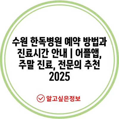 ✅ 2025년 수원 한독병원의 예약 방법과 진료시간을 자세히 알아보세요.